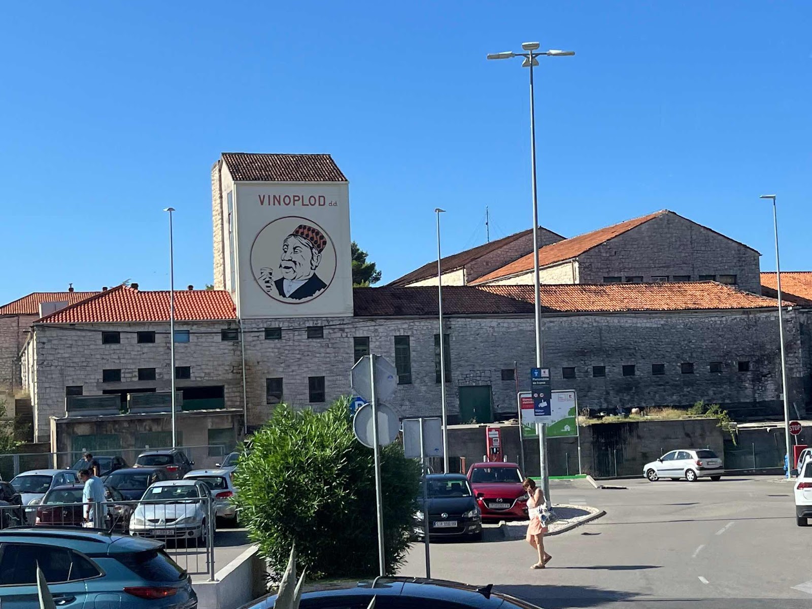 On the way we pass a winery called Vinoplod which has the picture of a man with a glass of wine. He is wearing a traditional hat for someone from Sibenik.